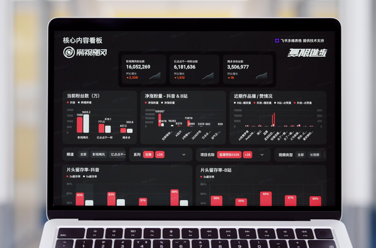 影视飓风通过飞书多维表格AI生成仪表盘与AI问数功能,重构了数据运营体系。具体实现了两大核心能力: