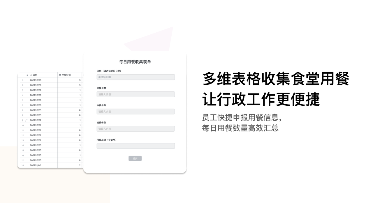 飞书文档一改中海地产的信息传递方式。以往,在行政工作中需收集大量信息如员工资料、员工反馈等,并需细致到人。信息是从员工到部门的层层递进,不但周期长,还极易出错,行政人员疲于信息的粘贴汇总。现在使用飞书文档中的多维表格,部门或者员工只需填写对应表单即可完成信息上报,所有信息自动汇总一处。现在中海地产中的订餐收集、防疫信息、防疫日报、社团报名都使用飞书文档收集,免去了行政人员的繁琐通知汇总,快速掌握一线信息。